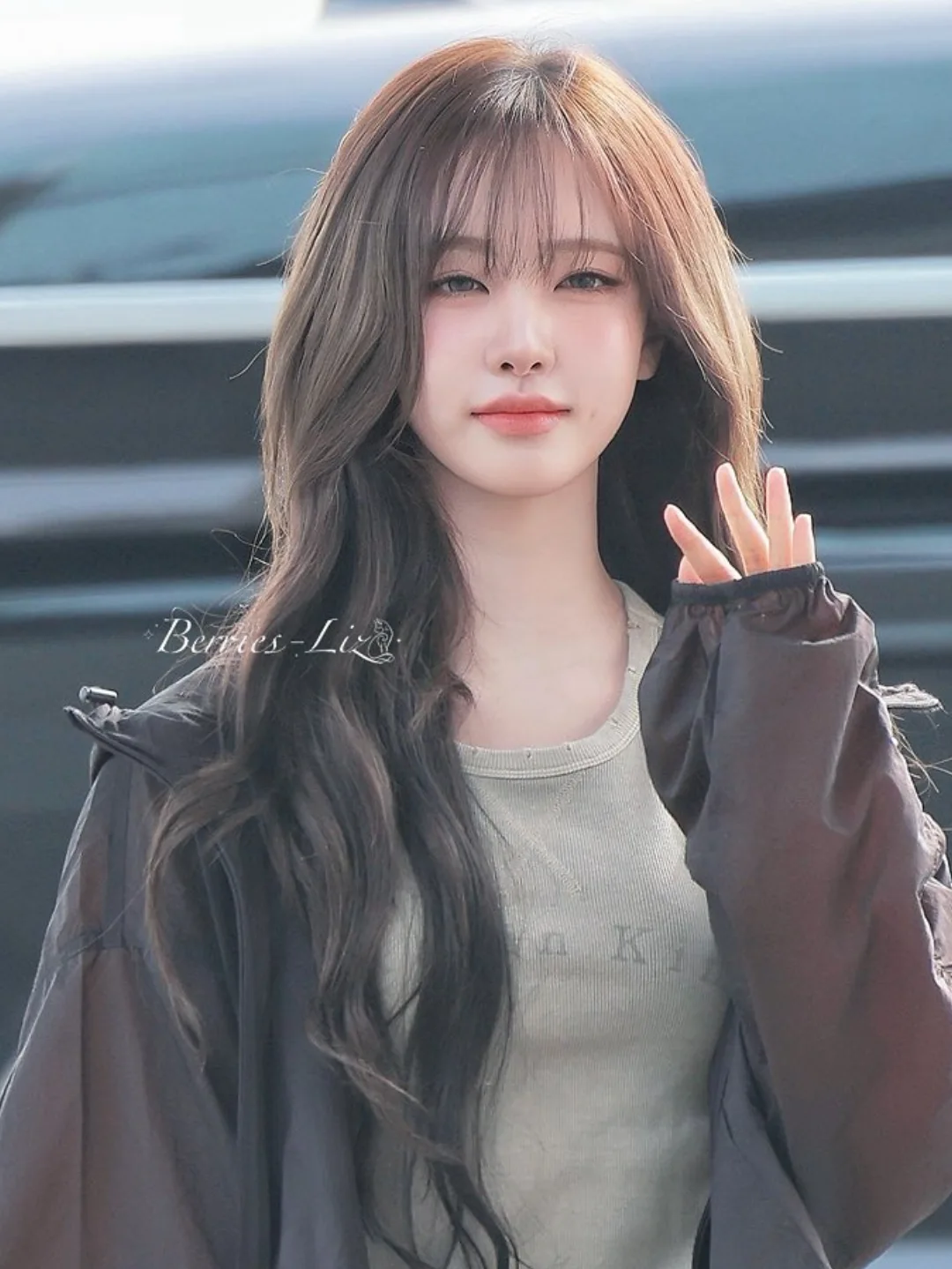 팬들을 향해 손을 흔들고, 수줍은 듯 **'볼 하트'**와 **'손가락 하트'**를 날려주는 모습에서 그녀의 따뜻한 팬 사랑을 느낄 수 있었습니다. 밝은 햇살 아래 환하게 웃는 리즈 양의 모습은 공항 전체를 환하게 밝히는 요정 같았답니다. 🧚♀️